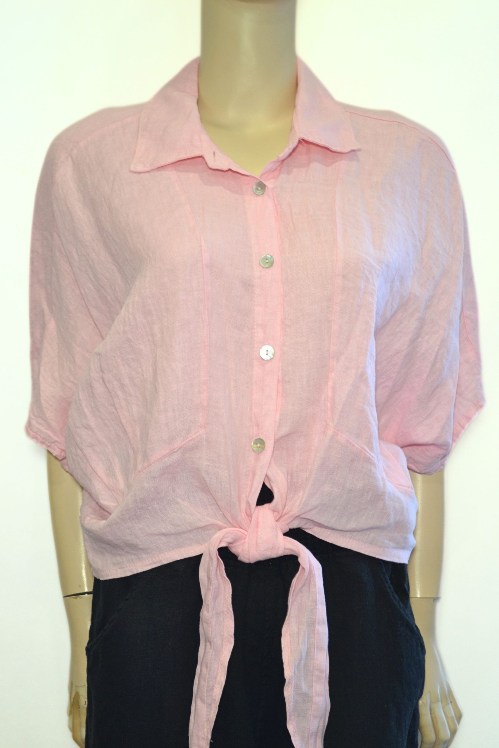 Lekka i kobieca bluzka lniana w subtelnym, jasnoróżowym odcieniu. Wykonana z naturalnego, przewiewnego lnu, idealna na ciepłe dni.