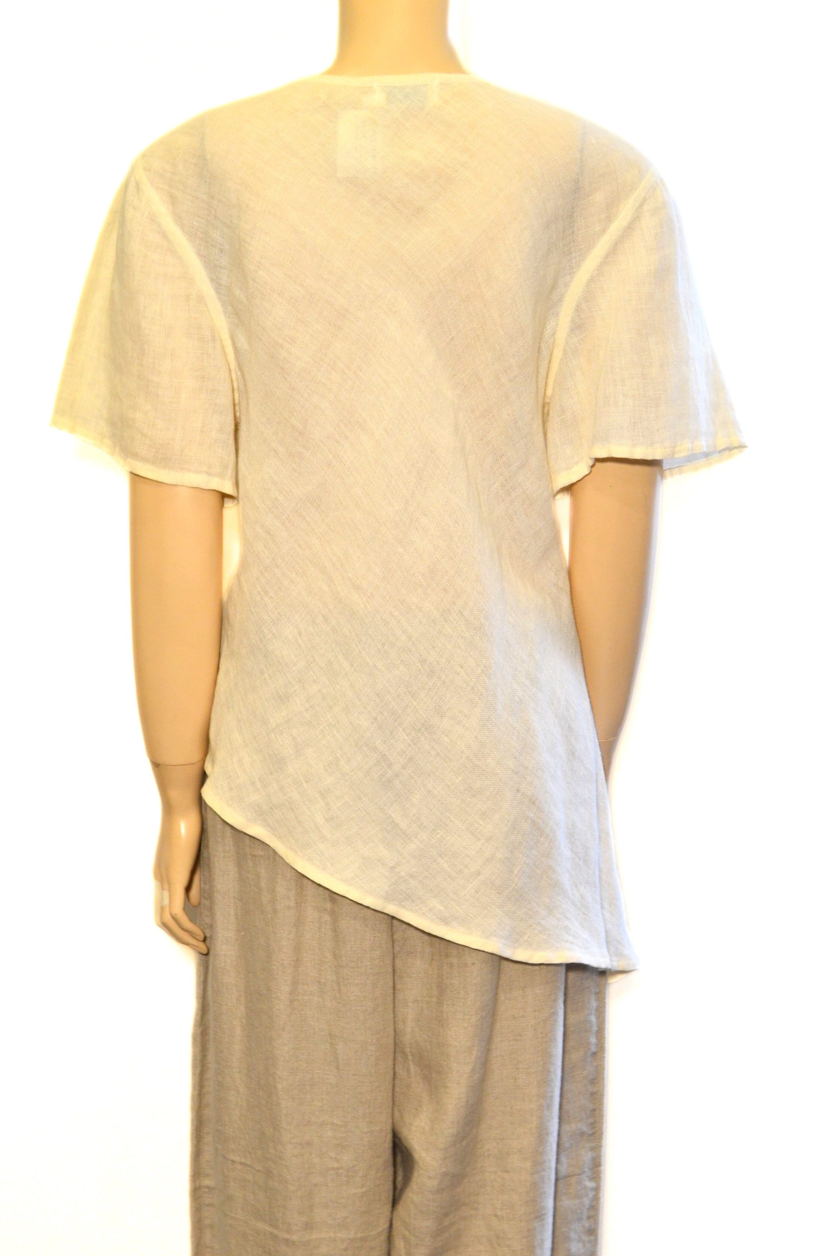 Lniana bluzka z białej siatki – asymetryczna, szyta ze skosu