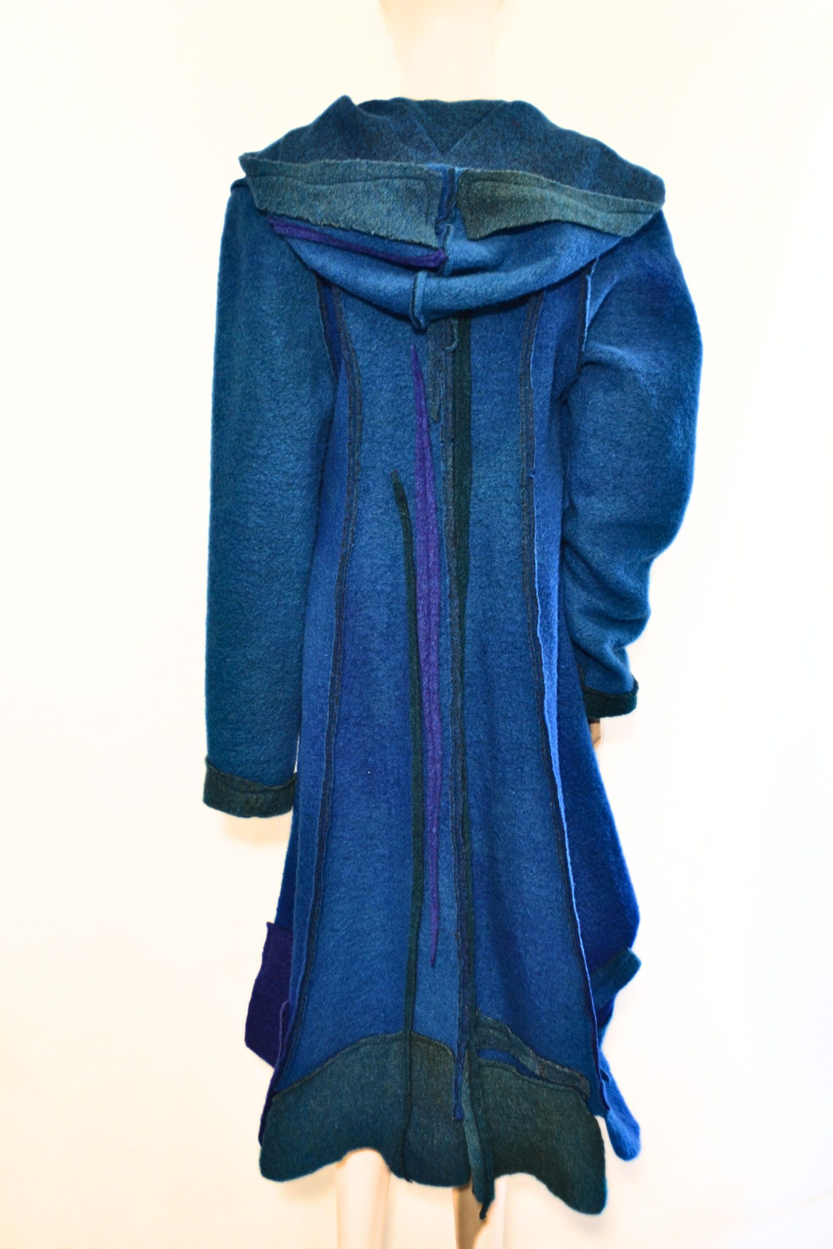 Wyjątkowy płaszcz wykonany z wysokiej jakości wełny filcowanej, łączący w sobie funkcjonalność i artystyczny charakter. Model o lekko poszerzanym dole subtelnie podkreśla sylwetkę, a wygodny kaptur dodaje mu codziennej praktyczności.