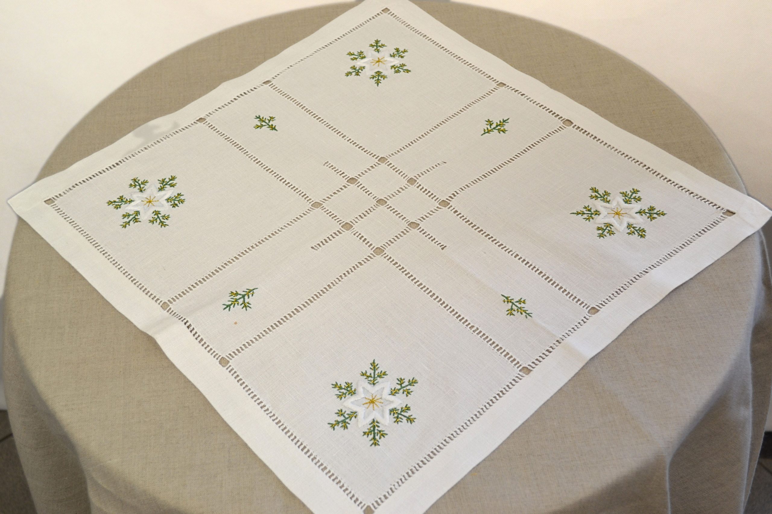 Serweta biała 45×45 cm z ręcznie haftowaną mereżką i gwiazdkami