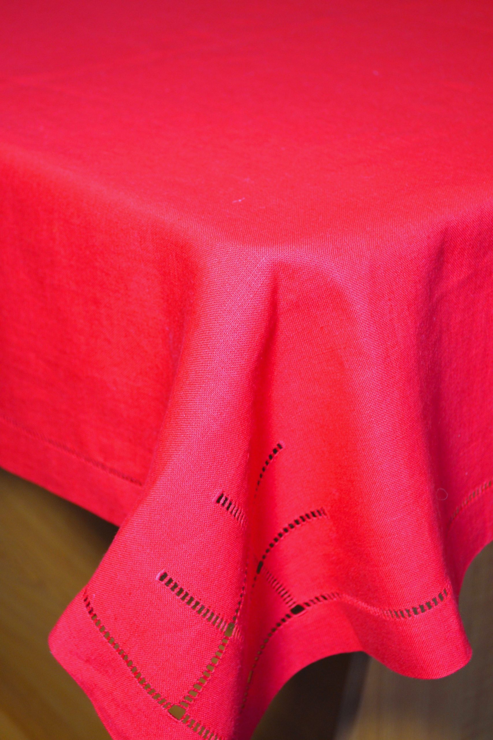 Obrus czerwony 145 × 180 cm z ręczną mereżką