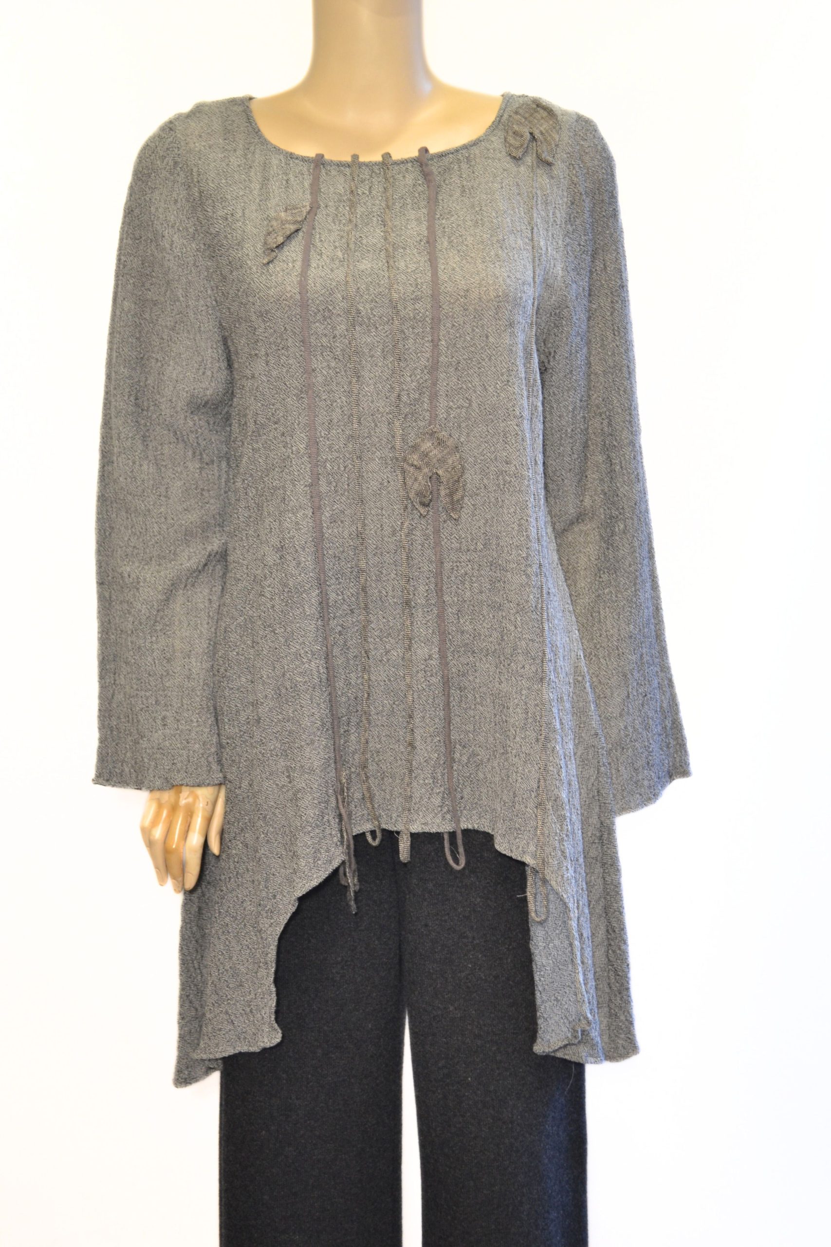 Tunika „Sól & Pieprz” została uszyta z wysokiej jakości lnianego kreszu w modnym melanżu, który doskonale wpisuje się w naturalną, minimalistyczną estetykę.