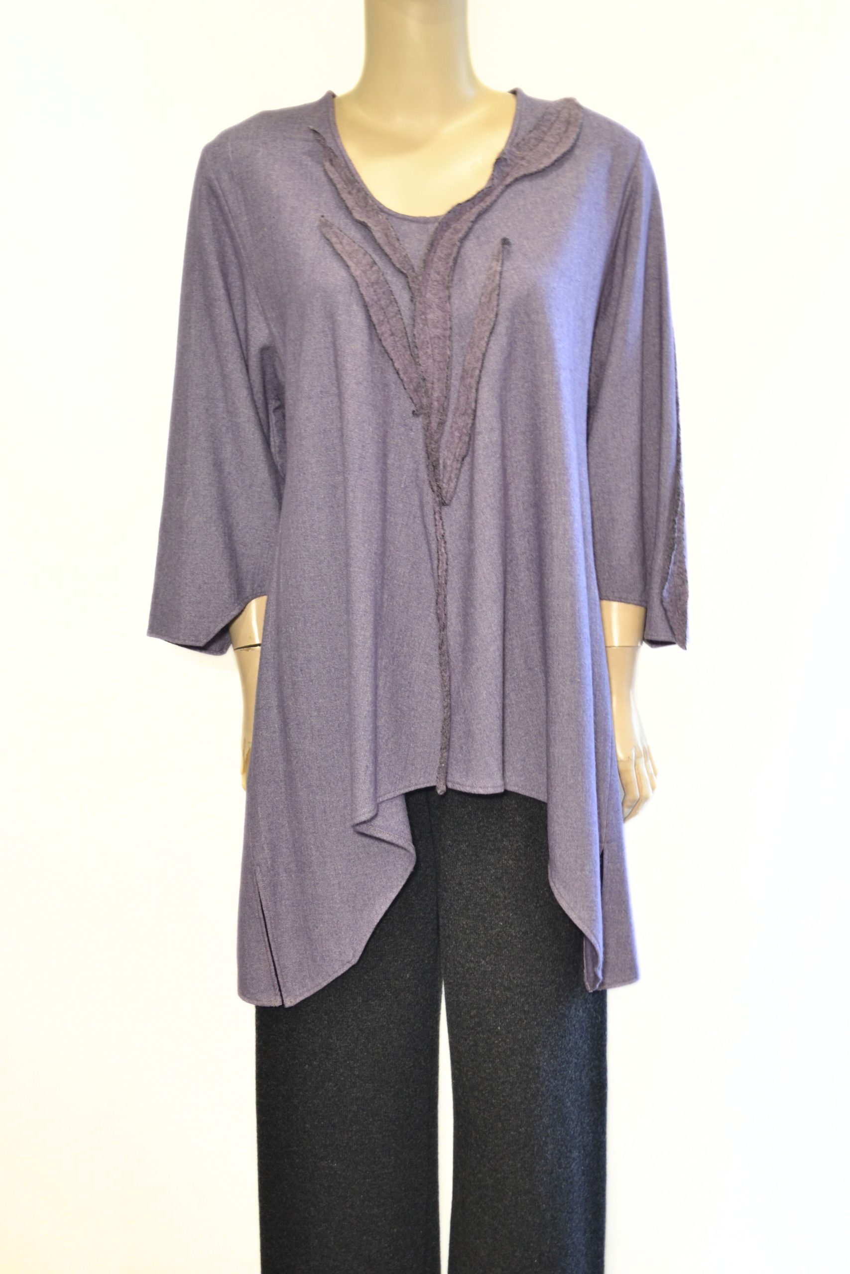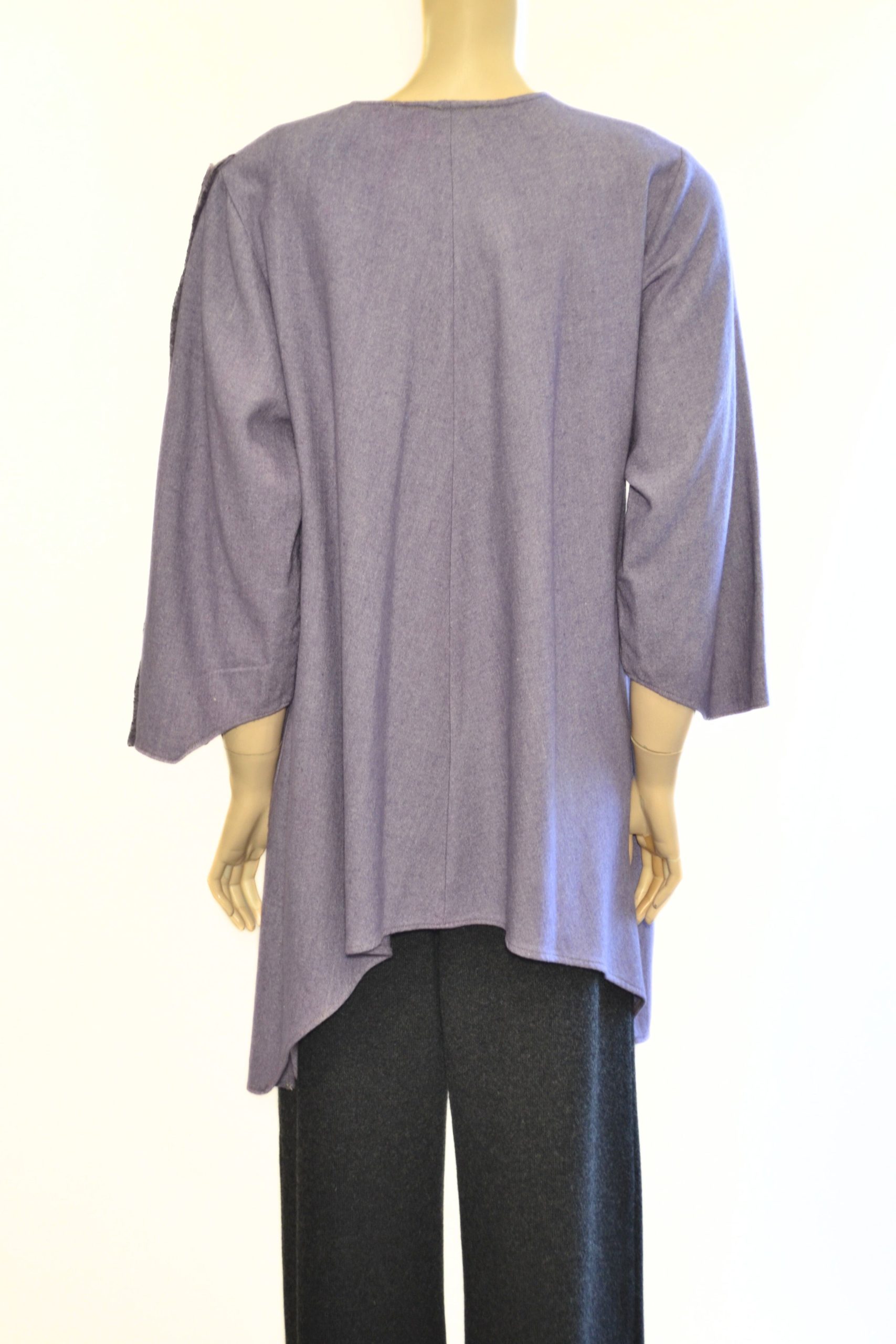 Tunika to połączenie naturalnej elegancji i komfortu noszenia. Uszyta z wysokiej jakości wełny w kolorze fioletowym zachwyca subtelnością, miękkością oraz ciepłem – idealnym na chłodniejsze dni. Neutralny odcień sprawia, że tunika doskonale komponuje się z wieloma stylizacjami i dodatkami.