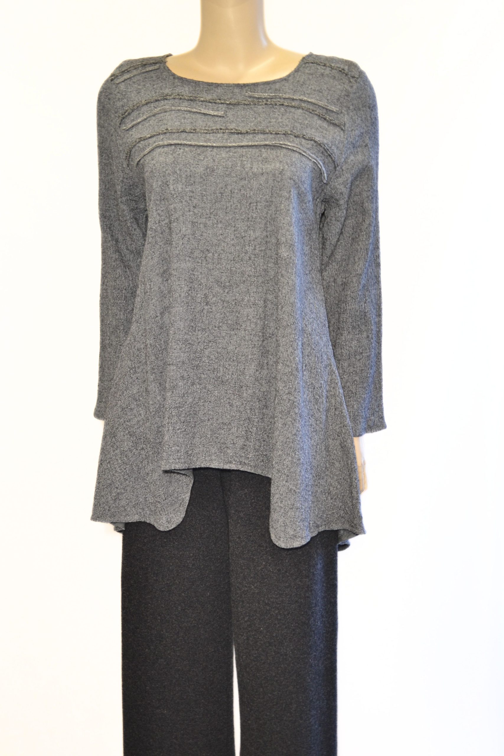 Tunika to połączenie naturalnej elegancji i komfortu noszenia. Uszyta z wysokiej jakości wełny w kolorze popielatym zachwyca subtelnością, miękkością oraz ciepłem – idealnym na chłodniejsze dni. Neutralny odcień sprawia, że tunika doskonale komponuje się z wieloma stylizacjami i dodatkami.